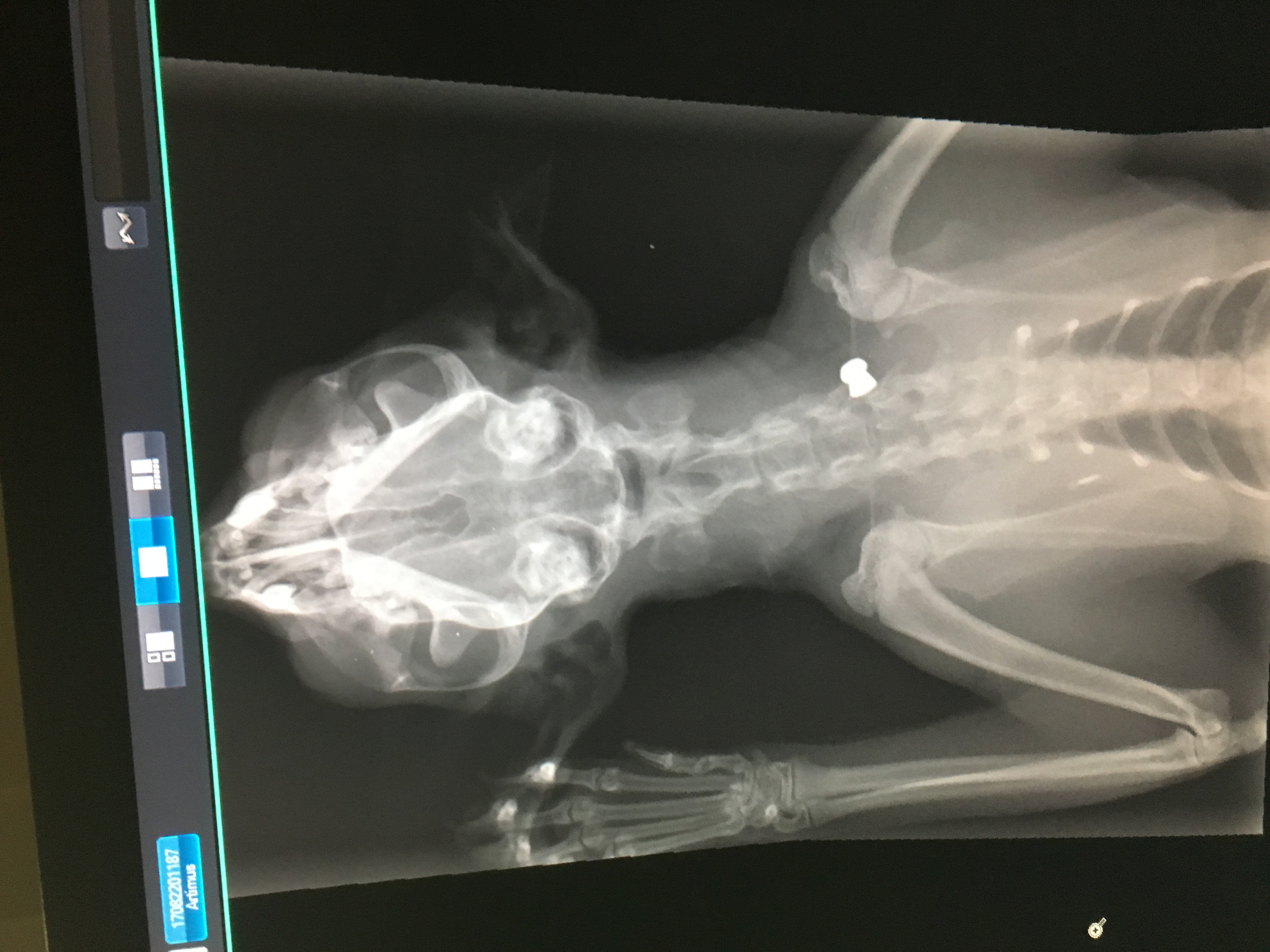 This is my kitten Artie. On Monday 21st August he was shot in the neck with an air rifle. The pellet has hit Artie's spinal cord. This has paralised his whole right side of his body. With surgery the pellet can be removed and he can begin his recovery, allowing him to eventually walk again. Unfortunately his insurance and the little money me and my fiance had towards our wedding fund has only covered the inital costs for the x-rays and CT scan. We now need more money to cover the surgery costs. Artie is our baby and a massive part of our lives (he even helped me with the proposal). It is his first birthday on 3rd September. It would mean so much if anyone could help us bring our fur baby home.