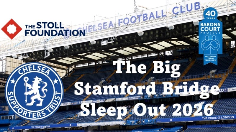 The Chelsea Supporters Trust will be supporting The Stoll Foundation and Barons Court Project by holding The Big Sleep Out at Stamford Bridge. All money raised will be evenly shared between these two great charities.