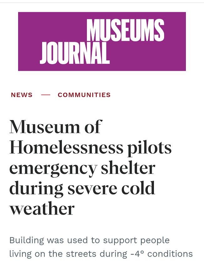 We piloted the world’s first emergency shelter inside a museum. Our shelter has been featured in Housing Justice and Homeless Link best practice trauma informed shelter guidance. People experiencing homelessness helped us design and tweak how the shelter ran. We will be running the shelter again this winter, when SWEP is called in London.