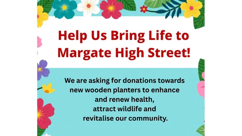 We are raising £1,000 for Margate High Streets new planters. This is to kick start the build of 8 new flower planters to replace last years pilot scheme ones that are too small so we are scaling up!