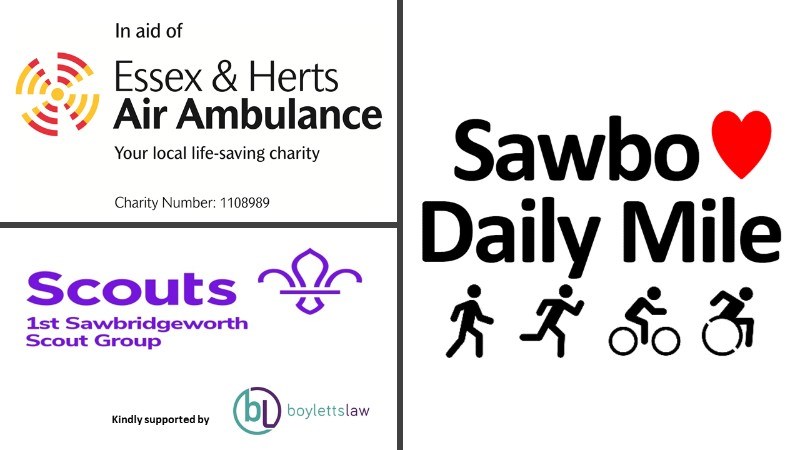 Anytime from Monday 29 March to 11 April you can do the Sawbo Daily Mile. It’s designed to get us all exercising – walking, running, cycling or rolling – while sticking to current Covid-19 regulations. By doing so, you can help raise badly needed funds for two of our fantastic local charities – Sawbridgeworth Scouts and the Essex & Herts Air Ambulance.