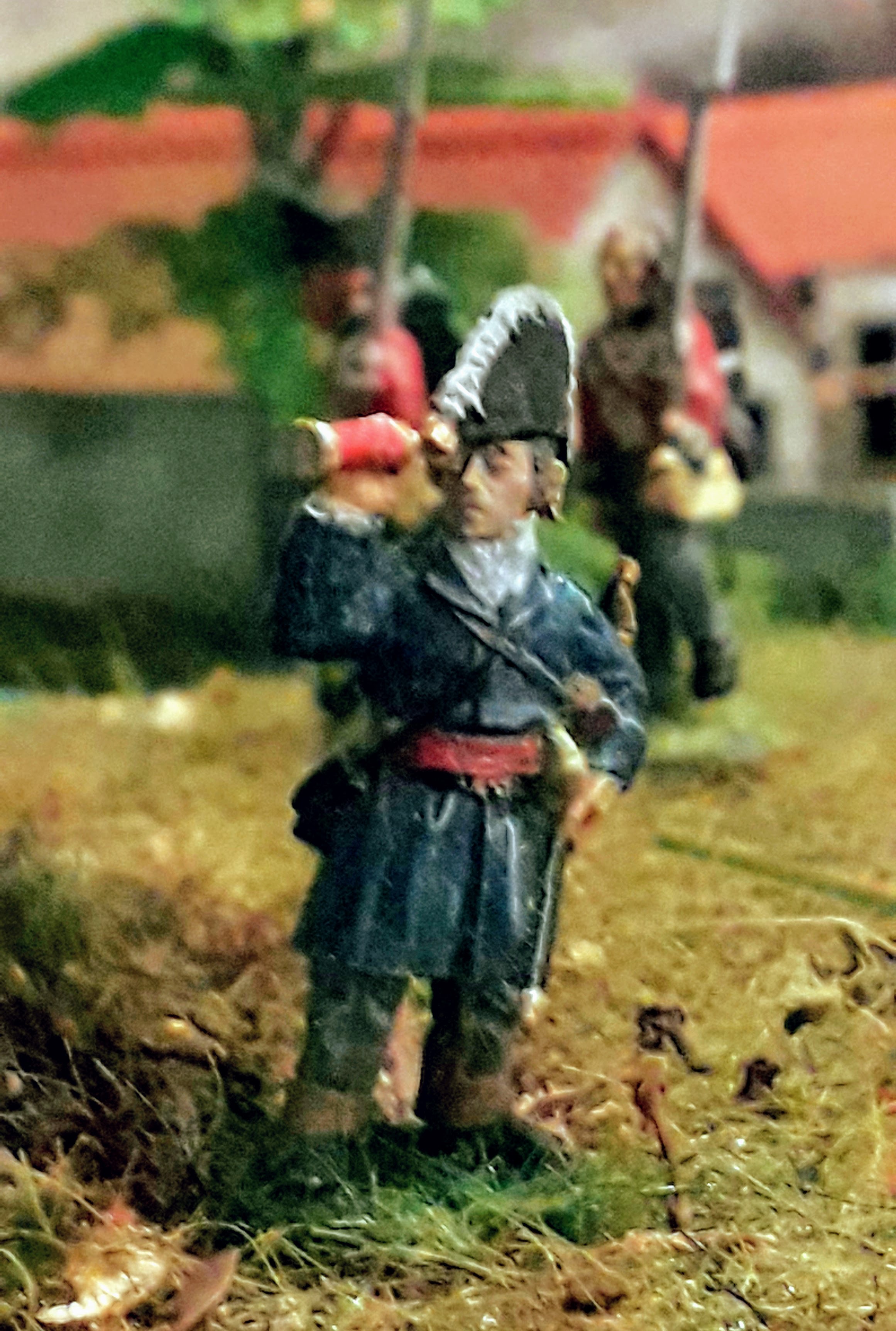 When recently modelling La Haye Sainte, I found useful information from the dig and found out what a fantastic task excavating Waterloo is for our veterans. With archeology, ex service personnel are able to employ skills they learnt in service and bring a unique perspective to understanding what would have taken place at specific areas of the battlefield.  The testimony from some of the veterans is inspiring and I want to give some thing back. I hope you’ll join me by sponsoring my attempt to paint eighteen figures in fifteen days.  I plan to base the figures on the 52nd Regiment of foot, who have a tale to tell of their part in the route of the Old Guard..
