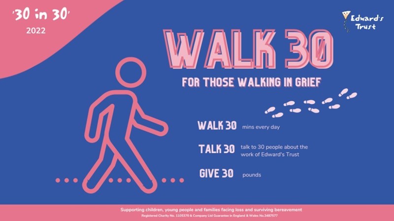 WALK30 is a fundraising campaign to raise money to support children, young people and families facing loss and surviving bereavement.