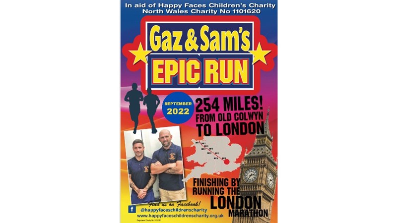 Please donate & support Gaz & Sam on their epic run to raise funds for Happy Faces Children's Charity, supporting sick, disabled & disadvantaged children in North Wales.