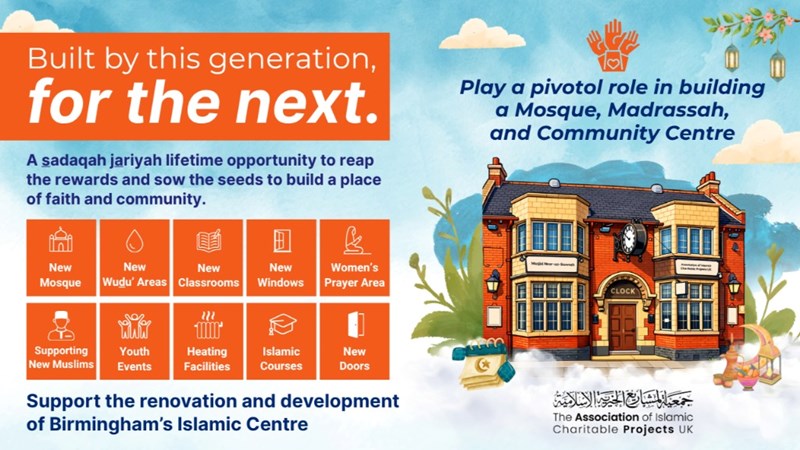 This renovation is more than just a repair project. It is an investment in the future of our community. By contributing to this cause, you are leaving a lasting legacy for the next generation of Muslims in Birmingham.