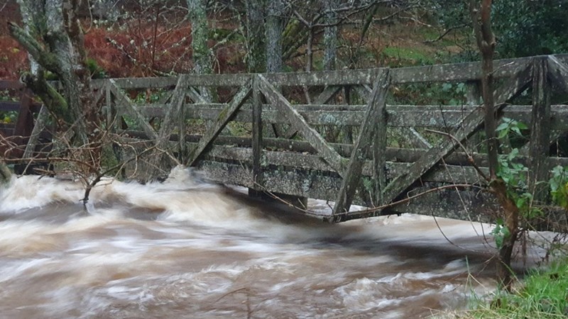To ensure it is safe and will stand for a while longer we now wish to remove and replace the main span that crosses over the burn. The cover photo above shows what this section looked like during the heavy rains in Autumn 2022; imagine the force of the water!