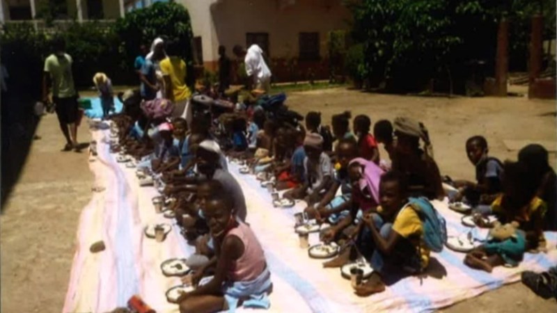 Many children are orphans and having lost both parents, they are cared for by other families who take them in. These children receive meals at schools and in some cases, parents receive a big bag of rice so that the whole family can be fed.