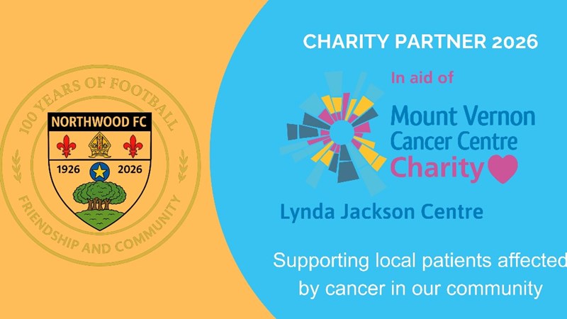 As part of our centenary year, Northwood FC has launched a year-long partnership with Mount Vernon Cancer Centre Charity, with a specific focus on supporting the Lynda Jackson Centre, which provides vital emotional, practical and wellbeing support to people affected by cancer and their loved ones.