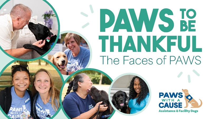 From October 15 through December 2, join us for our annual online fundraiser, PAWS to be Thankful (PTBT), where we’re celebrating our community by sharing the stories of the Faces of PAWS—highlighting the love, dedication, and countless hours that go into creating every successful partnership.