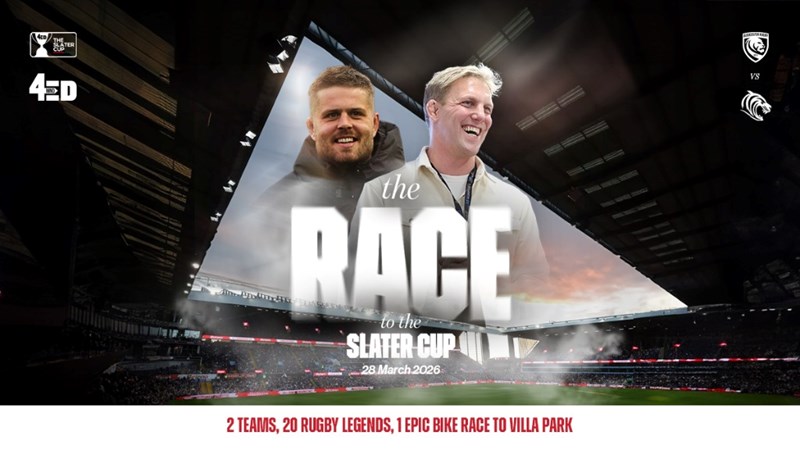 The Race to the Slater Cup teams will be captained by England legends Mike Tindall (Gloucester Rugby) and Martin Johnson CBE (Leicester Tigers) and made up of former players from both sides, to be announced over the coming weeks, and they will race approximately 45 miles from their respective home stadiums (Kingsholm and Welford Road) to Villa Park, in a bid to be the first to arrive.