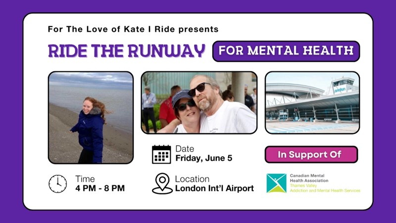 Help us raise awareness and donations for Mental Health on Friday June 5th, 2026 from 4pm - 8pm at the London International Airport!