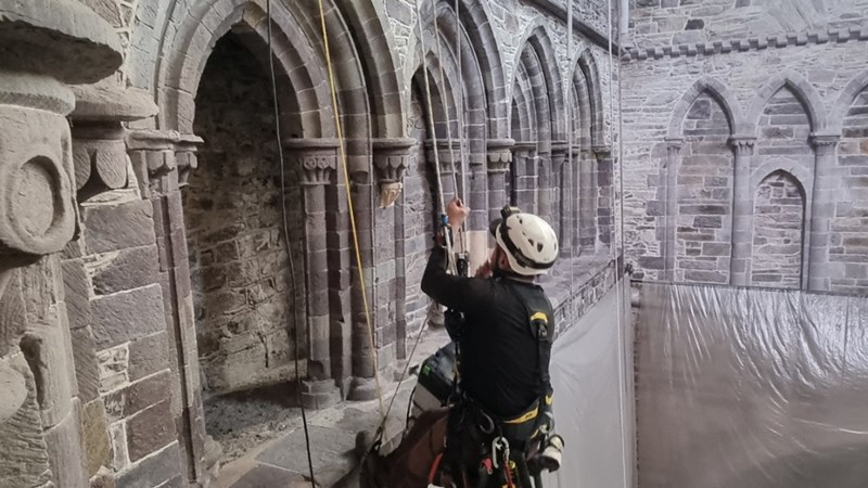 So many visitors comment on how good the building looks, but behind the scenes, we're struggling! Those of you who have visited when the Pembrokeshire weather is at it's dramatic worst will probably have spotted the strategically placed buckets... but those leaks are just the tip of the iceberg. The tower needs major works to replace its iron tie bars, and replace the well-meaning but now disastrous cement mortar used in the 20th century for repairs. The impact of climate change on the roof and gutters needs to be addressed for the long term. The very stone of which the cathedral is built is crumbling due to the power and frequency of the storms we are now experiencing.