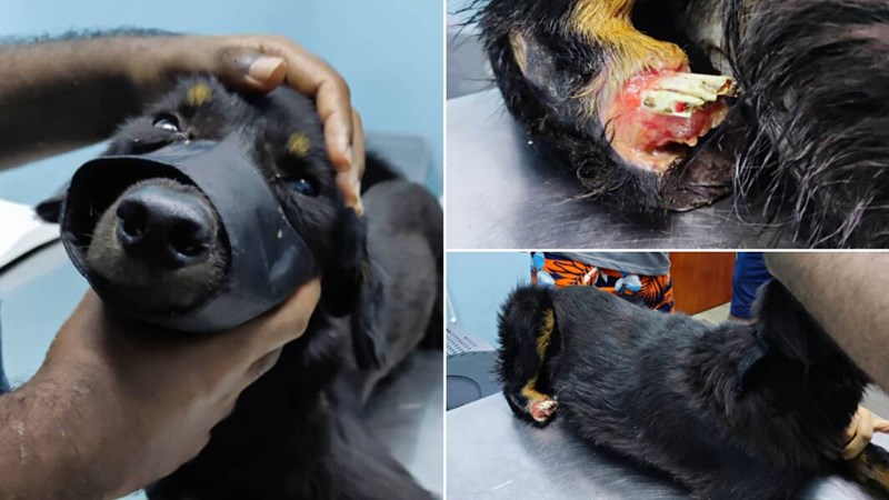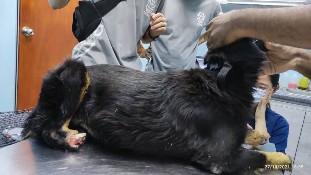 Survivor was living on the streets of Penang with a huge part of his back leg missing and bones protruding through his skin. Can you imagine the excruciating pain he must have gone through, wandering around like this day to day, not knowing if help would come?