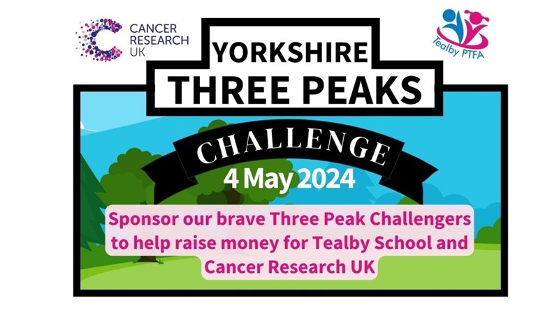 We would love if you would sponsor our brave Yorkshire Three Peak Challengers whose goal is to raise money for both Tealby School and Cancer Research UK by walking 24-miles (38.6km), including 1585m (5200ft) of up (!!) in 12 hours... or less.