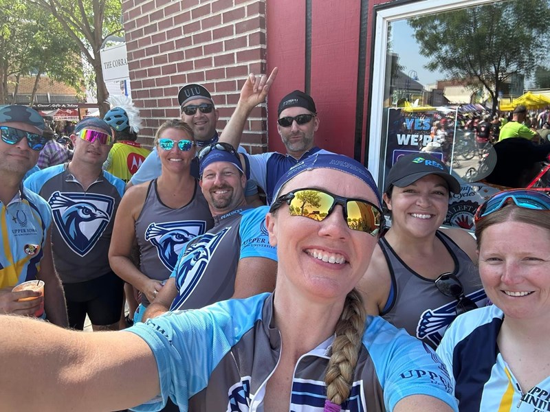 Amanda is riding RAGBRAI with Team Peacock! She joined the team in 2018, and this will be her 8th ride. A proud UIU alum, Amanda owns Barks & Wags Pet Service, a dog daycare, grooming, and boarding business she runs with her husband Jon and their team. Their motto: “Our passion is pooches.” When she’s not caring for dogs, Amanda enjoys biking, hiking, reading, movies, and cooking (but not baking!).