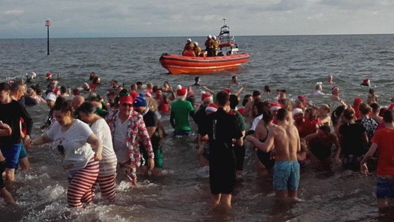 The Teignmouth Festive Walk in the Sea has been held annually on Boxing Day for 15 years to raise funds for the RNLI. The event includes a Fancy-dress Competition which will be judged by the Mayor of Teignmouth at 10:45, followed by a warmup session on the beach at 10:50 and the big Splashdown taking place at 11:00.