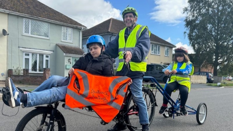 Having completed a 'Ride & Stride' event in preparation for the main event, Robin, Andrew and Helena have already practised using their adapted bike loaned from Charlotte's Tandems.