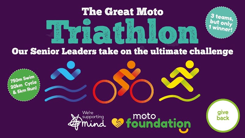 On 21 September the Moto Operating Board and other Moto Senior Leaders will vie (or should that be tri?) to become the ultimate team triathlon champions! The teams will take part in a sprint tri – a 750m swim, 20km bike ride and 5km run, while also raising funds for Mind - Moto Foundation's national charity partner.