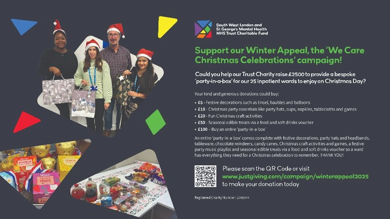 Christmas, however, can be a difficult time for anyone who needs to be in hospital, particularly for people struggling with their mental health, so this year we are adding an extra touch of wonder and delight to the holiday season by treating our hardworking ward staff members and inpatients to a ‘We Care Festive Celebration.’