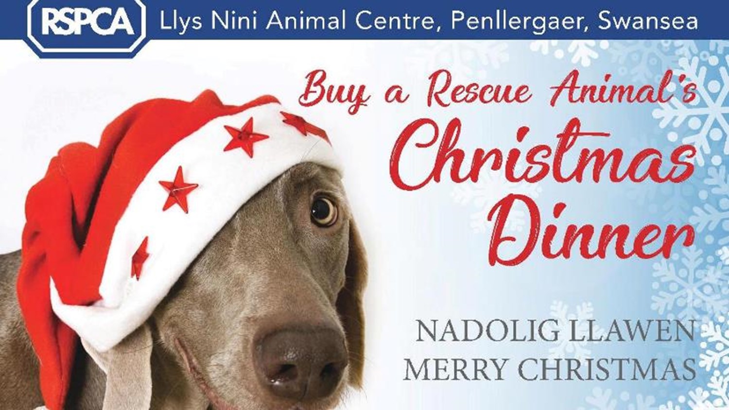 Buy a dinner for homeless rescue animal at Llys Nini this Christmas. Your donations will help us keep our animals fed and warm over the festive period and make Christmas a special time for them also. For a suggested donation of just £5.