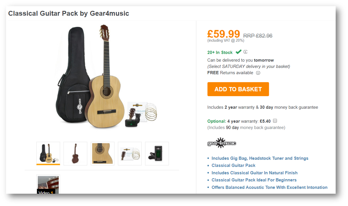 We're trying to buy 100 of these £59.99 nylon string guitar packs for ex-homeless people who are learning to play guitar for the first time.