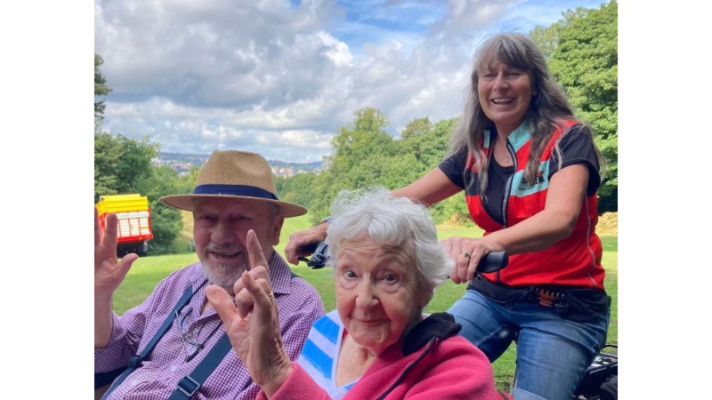 Many of our passengers live in care homes. We pick them up and cycle them round on our marvellous three-wheeled e-trishaws. Leisurely cycling in parks provides opportunities to touch flowers, feel the wind in your hair, laugh at ducks and find unexpected sculptures. We share memories and make new ones.