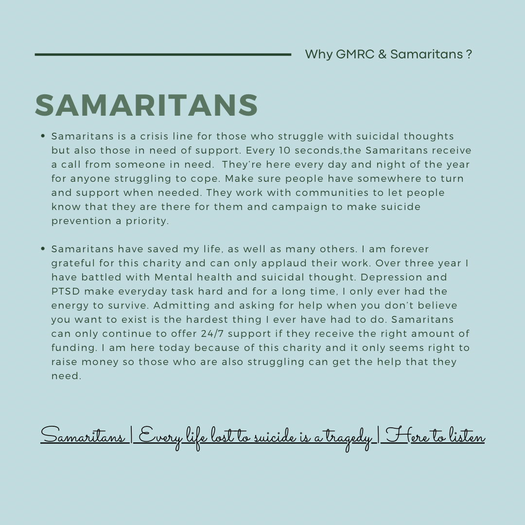 I hope you decide to follow us along on this journey and join us in raising money for GMRC and Samaritans this year. Any donations are appreciated ! Please share our just giving page and follow our instagram page @learningto_survive