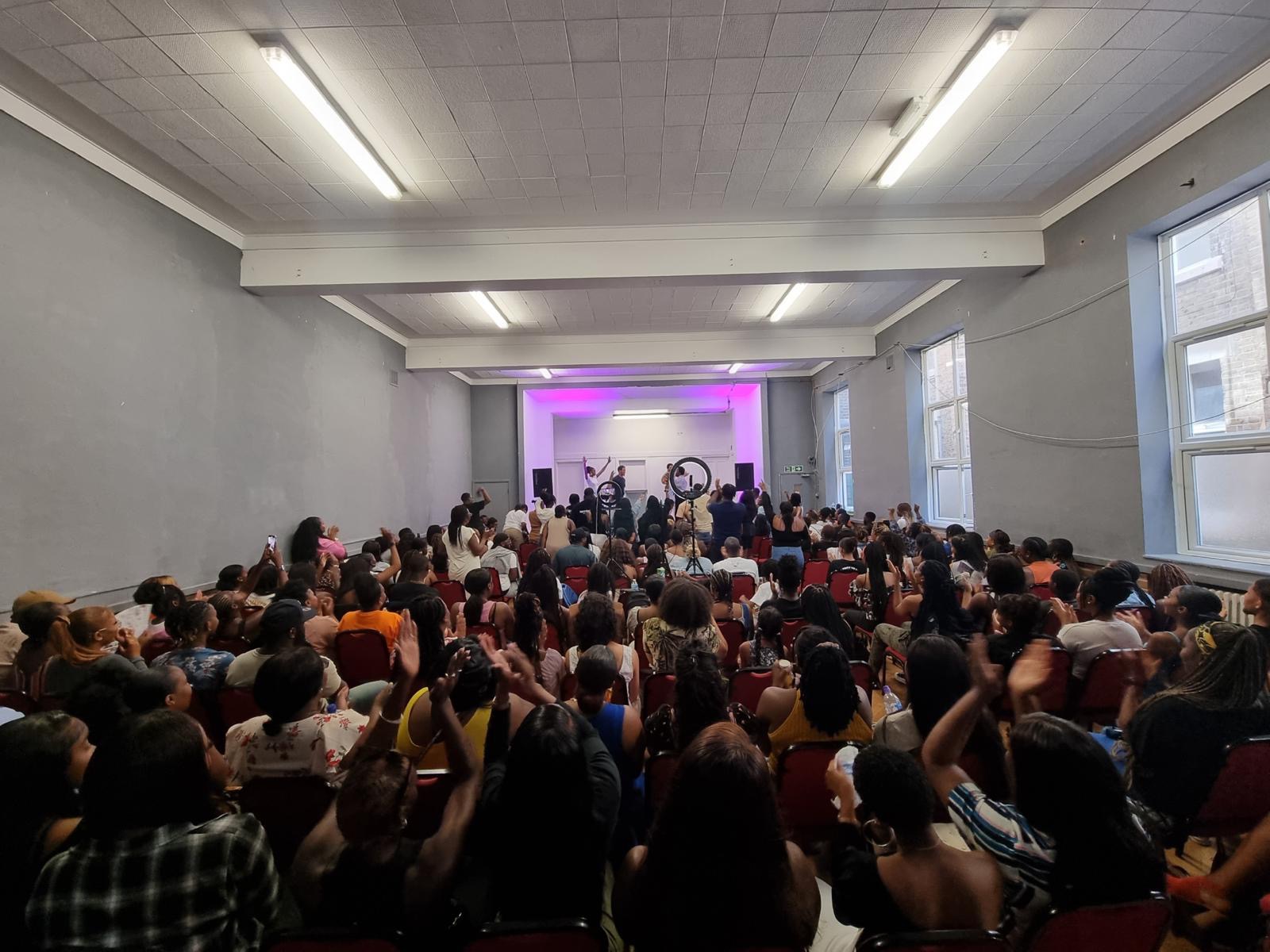 (ARC 2.0 members gathered for Sunday service in Theatre space)