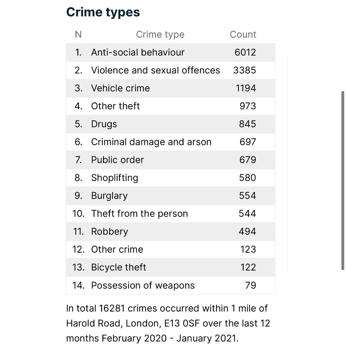 The image below provides a data breakdown of various criminal acts recorded in 12 months in and around the local area. From these figures, it is clear that this community is in need of sincere support and investment that we are keen to provide. Community is our priority and safer streets is our aim.