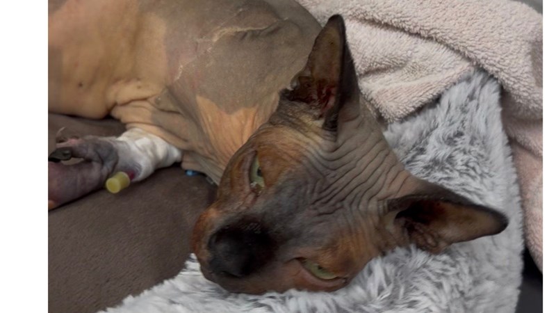 They’ve told us this could be FIP, a severe viral infection, toxoplasmosis or lymphoma. His lymph nodes are enlarged, and they have already taken bloods, swabs, and a sample from his spleen to try and find answers. Right now he’s on an IV line and anti-sickness medication because he keeps being sick.