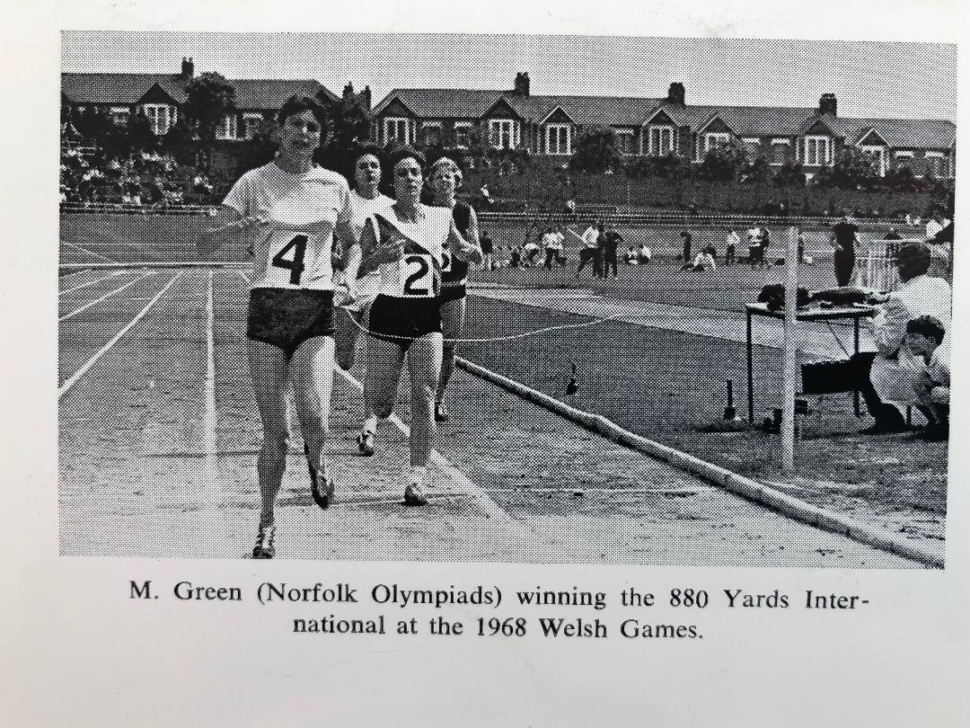 Despite suffering a broken leg and a long spell in hospital after being run over she managed to compete for Norfolk 5 times in the English Schools Championships. She won it twice, the first time over 150 yards and the second time over 880yards