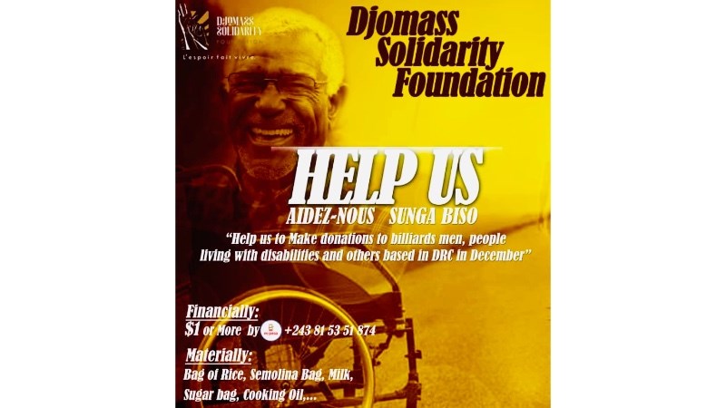 Objective: Make donations to billiards men people living with disabilities and others based in the Democratic Republic of the Congo.