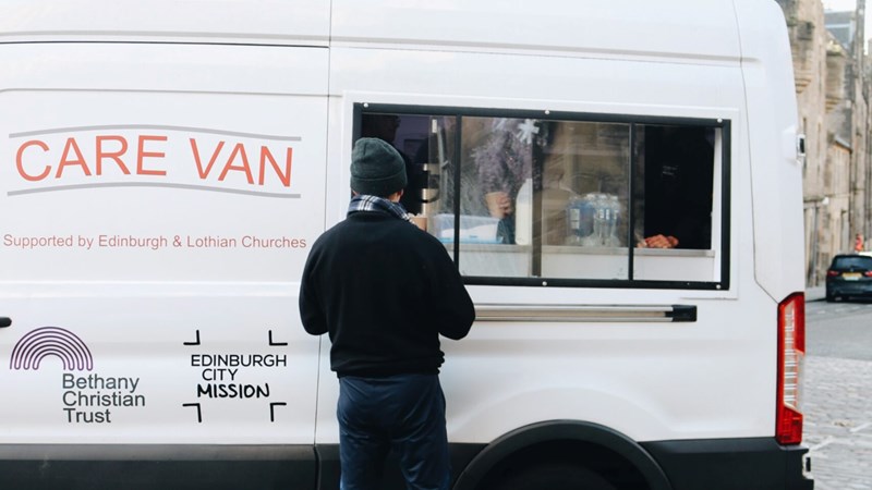 Run in partnership between Bethany Christian Trust and Edinburgh City Mission, the Care Van provides hot meals, warm drinks, clothing, toiletries, and (just as importantly) a listening ear and a moment of human kindness to people with nowhere else to turn.