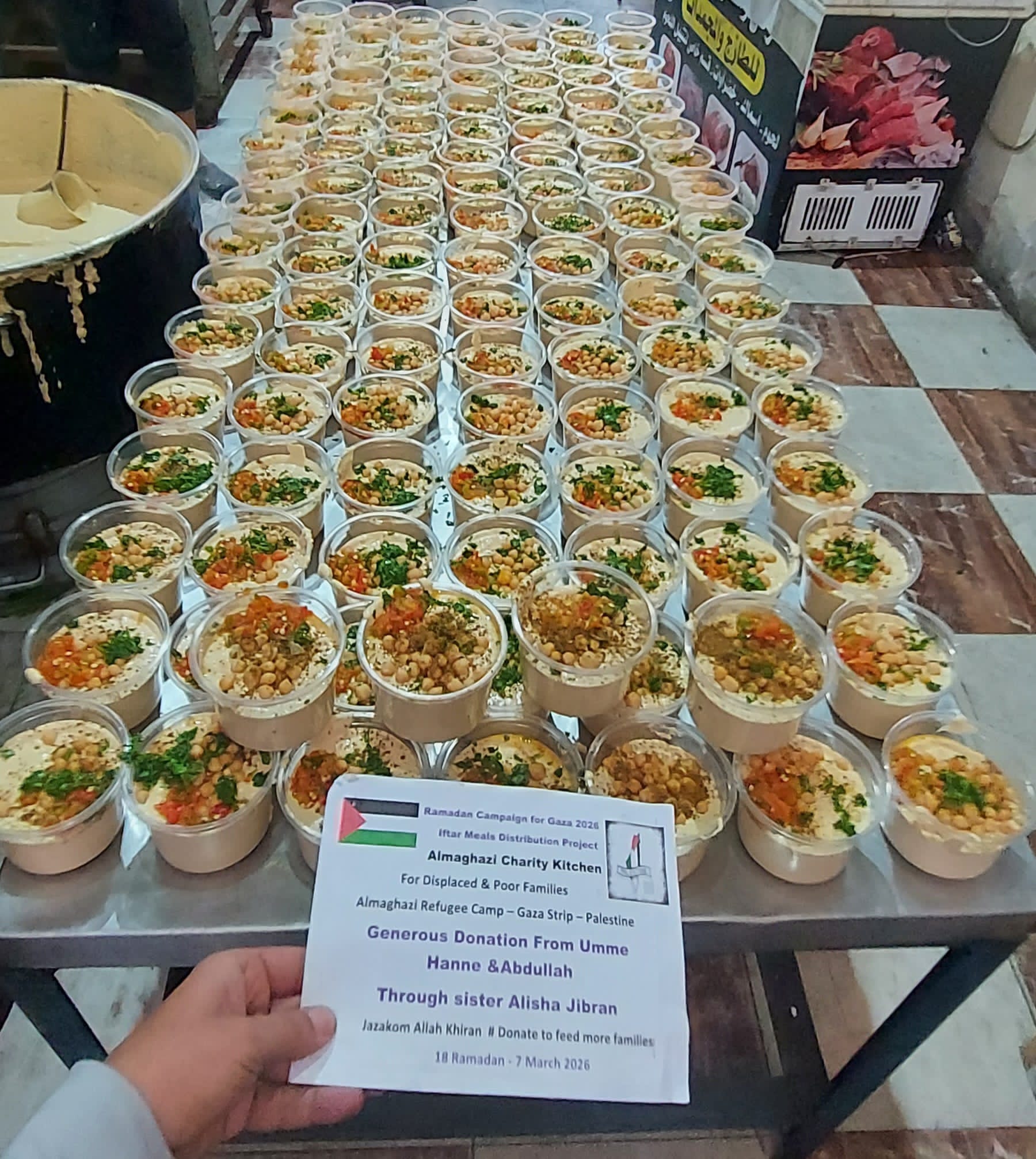 Main Aim: Provide a dignified daily Iftar hot meal through Al Maghazi Charity kitchen for displaced families and those without cooking means.
