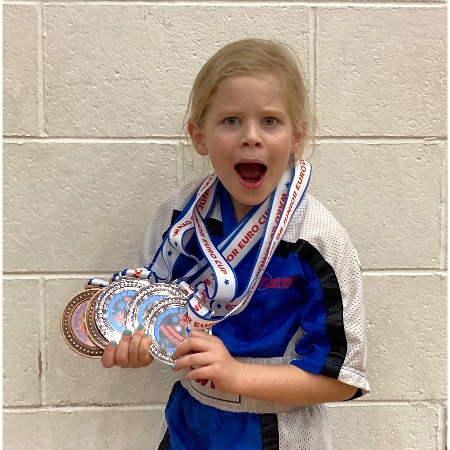 My daughter Eirys is 8 and loves kickboxing. She trains twice a week at her local club and has been selected to attend training with Team GB. Eirys would like to attend competitions both nationally and internationally and hopefully will be representing Team GB at the European Championships in Turkey later this year. The Olympic committee which have just recognised Kickboxing as an Olympic sport, will not fund the competitors as they are not within the Olympic cycle.