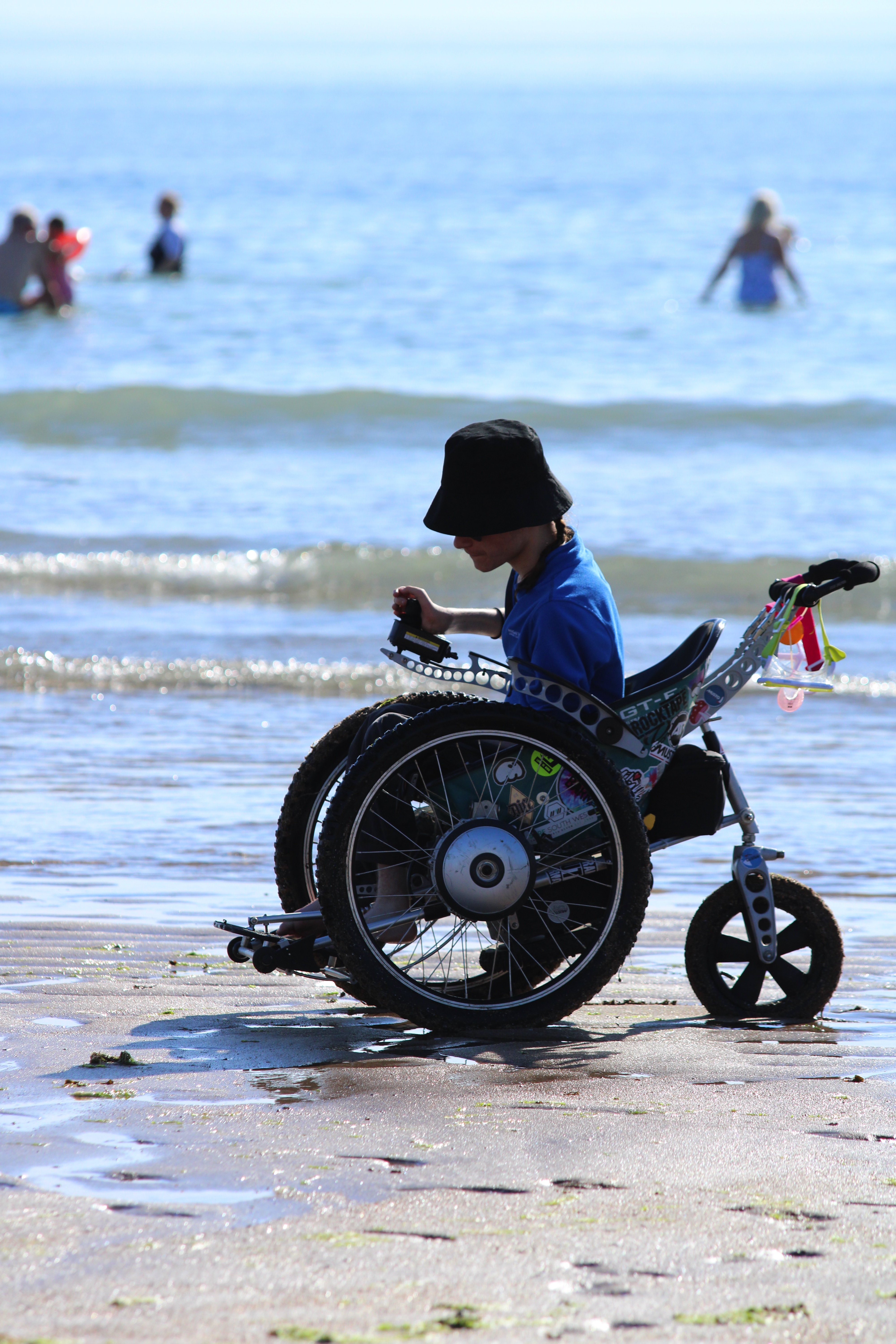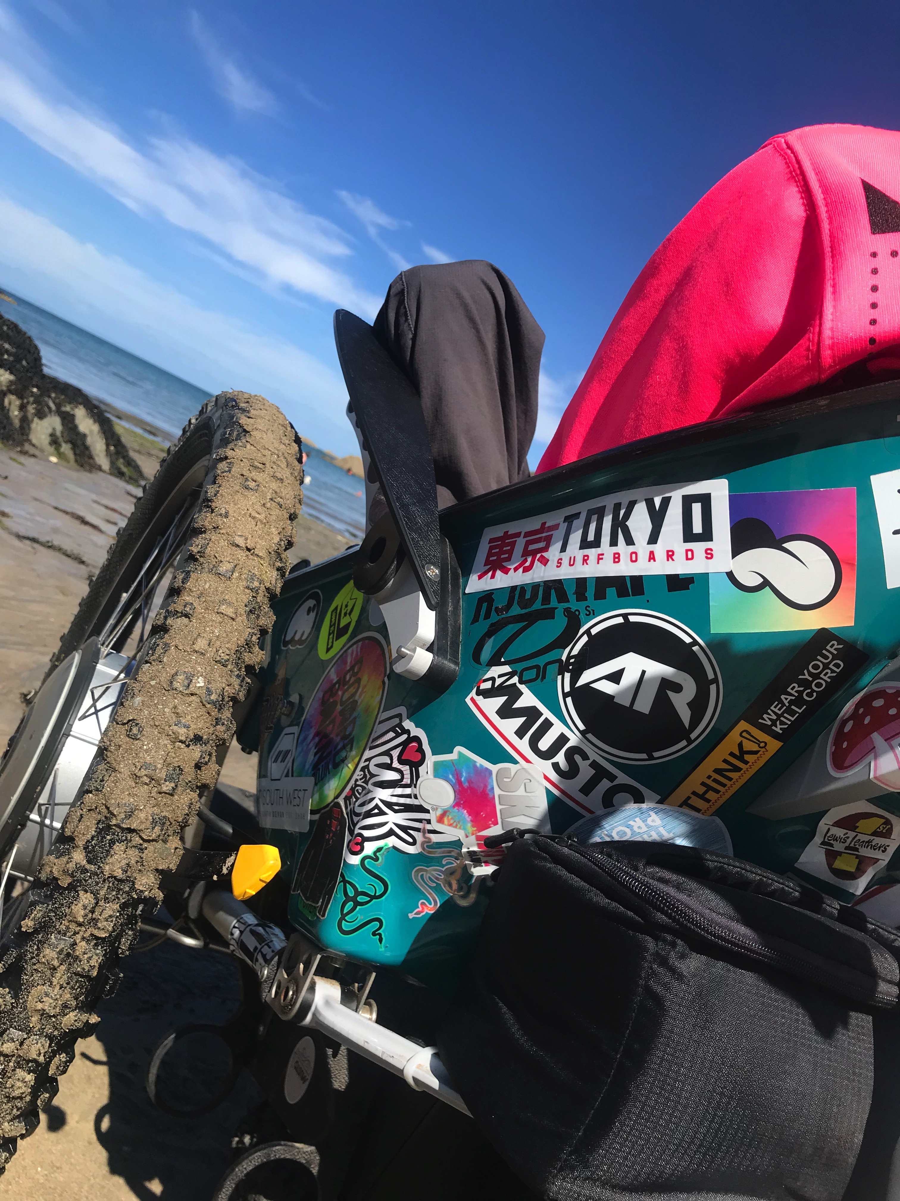 Frankie above surfing with The Wave Project North Devon - this allows him to surf with his brothers. But we need to trekinetic to get to the beach!