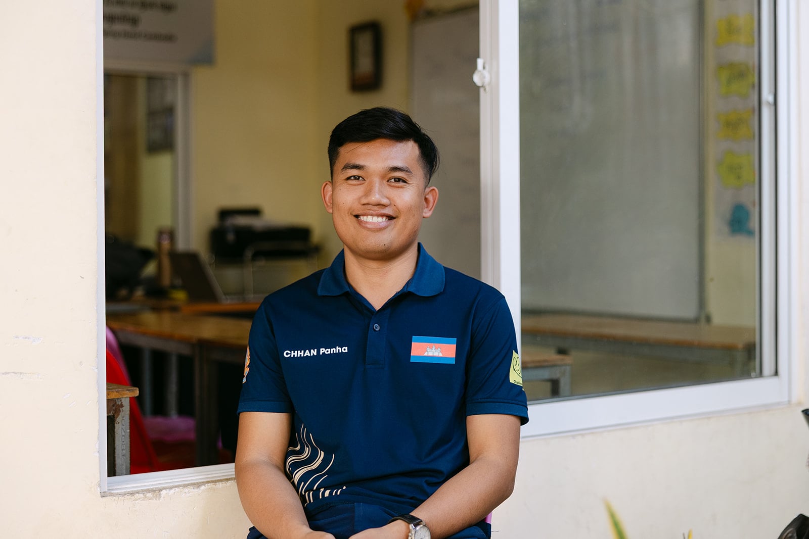 Our English teacher, Chhan Panha, holds a Master's degree in Teaching English and brings passion, expertise, and patience to our classroom.