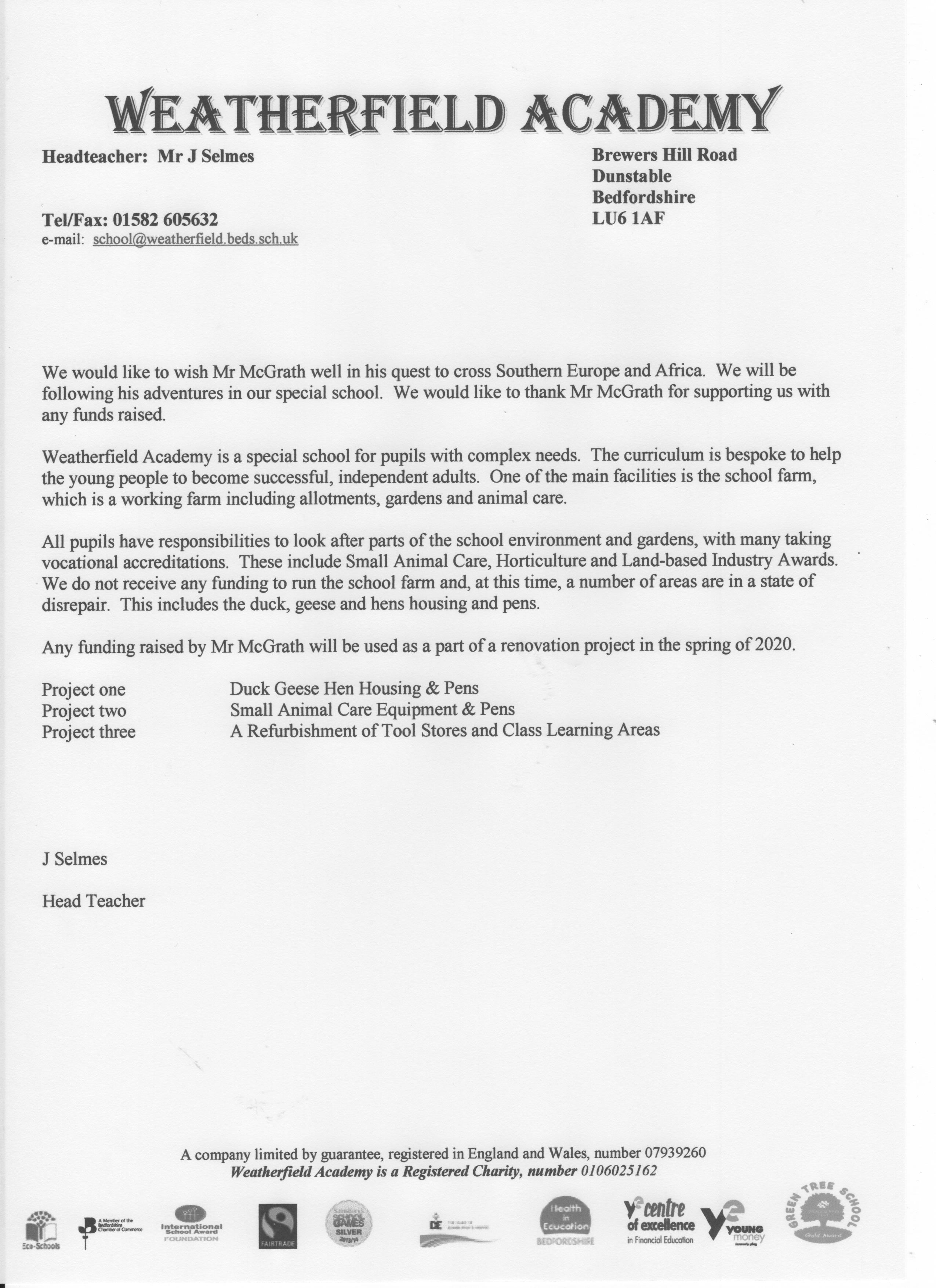 All money raised will go to Weatherfield Academy (see letter below), which is a special school attended by Jonathan's Son Alfie. All travel costs are being covered by Kenny and Jonathan. Should Kenny get kidnapped, no sponsor money will be used for his release - they can keep him!!