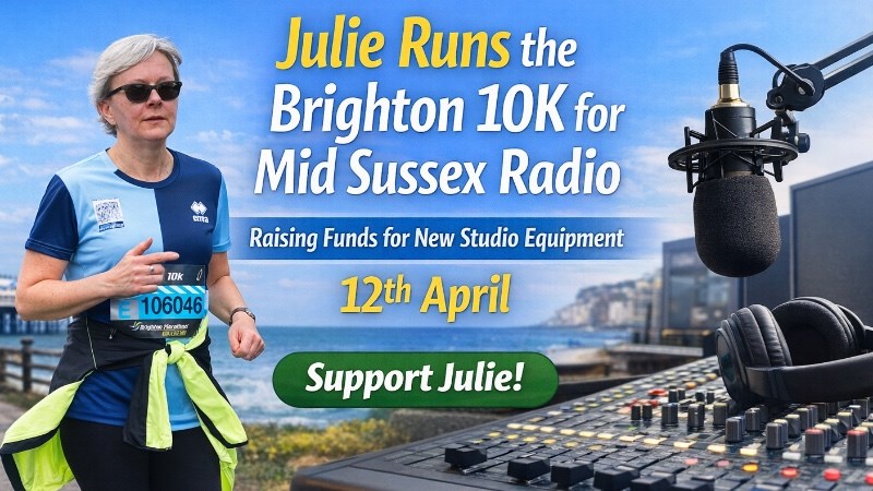 I have taken on the challenge of training for the Brighton 10k on 12 April 2026. I have recently taken up running again after several years so I am having to build the distance gradually over the weeks. This takes commitment, time and determination and every mile I run is powered by the generous support of those who value local radio and the vital role it plays in bringing people together. If you are able to sponsor me, no matter the amount, you’ll be helping to keep community voices on the air and ensuring Mid Sussex Radio can continue to grow, improve and broadcast for years to come.
