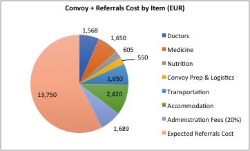 Convoy Details: The convoy and subsequent medical referrals have a total cost of EUR 24,000/EGP 587,700 (detailed cost chart below). Cost includes: 1) GP visit to tribes 2-3 weeks in advance of medical convoy for patient data gathering and confirmation of needed specialties; 2) medical convoy (mobilizing 13 specialties, volunteers and equipment + general mother & child hygiene and dental awareness sessions + medications); and 3) expected referrals for 50 cases for treatment in Cairo including free of charge operations/extensive treatment.