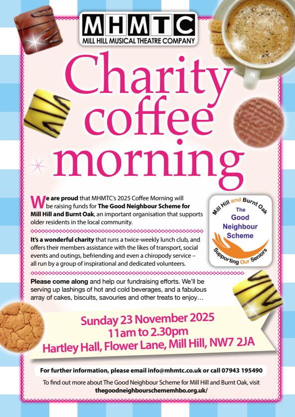 We are proud that MHMTC’s 2025 Coffee Morning will be raising funds for The Good Neighbour Scheme for Mill Hill and Burnt Oak, an important organisation that supports older residents in the local community.