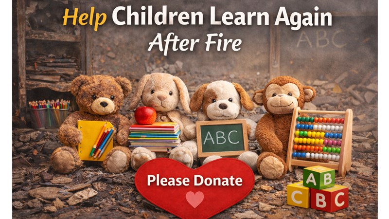 After recent fire, her home and teaching space were devastated by thick smoke and soot. Although the flames were limited, the damage caused by smoke destroyed thousands of handmade teaching aids, books, sensory materials and essential lessons supplies built over three decades.