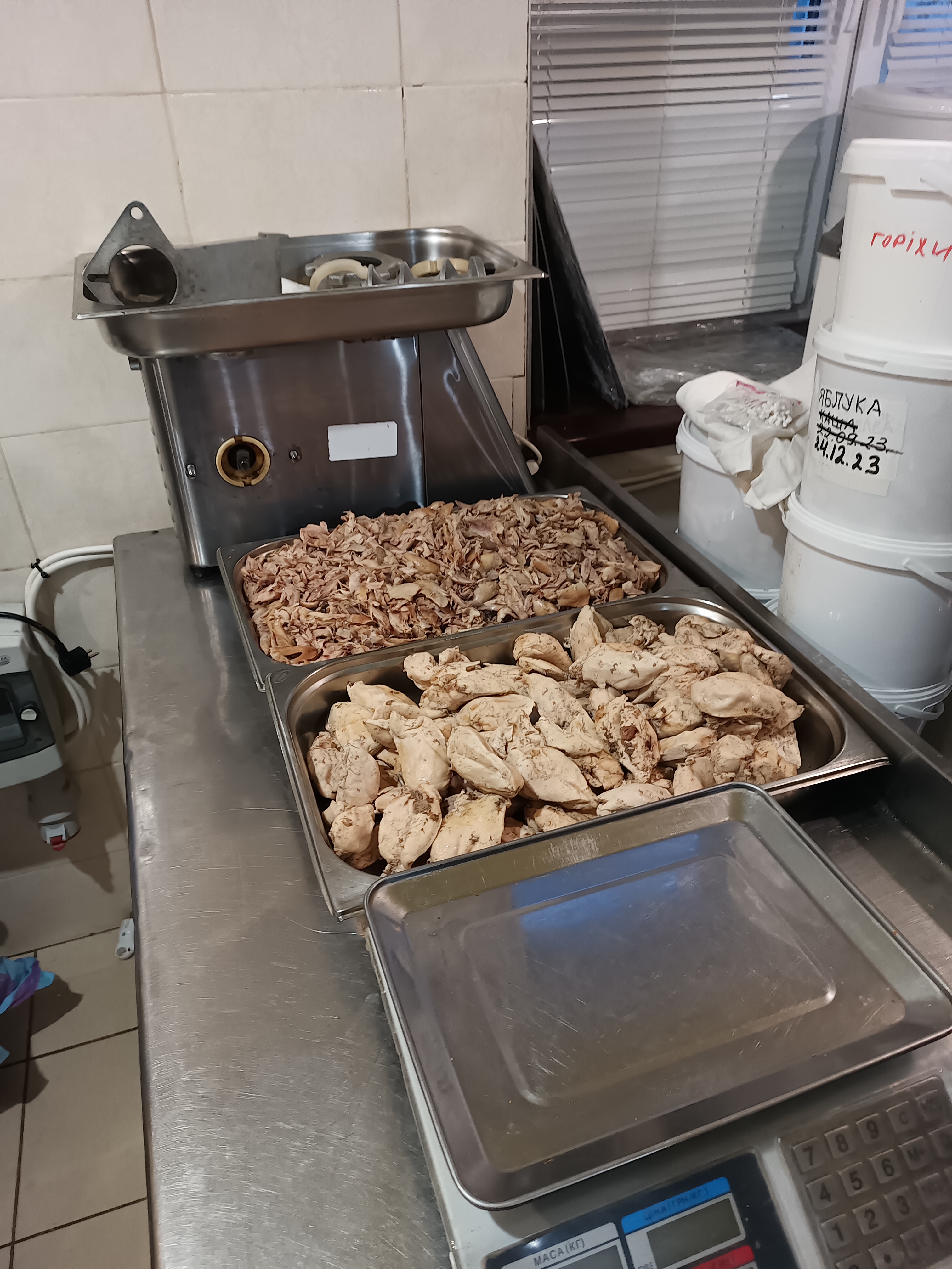 Shredding chicken ready to be dehydrated: