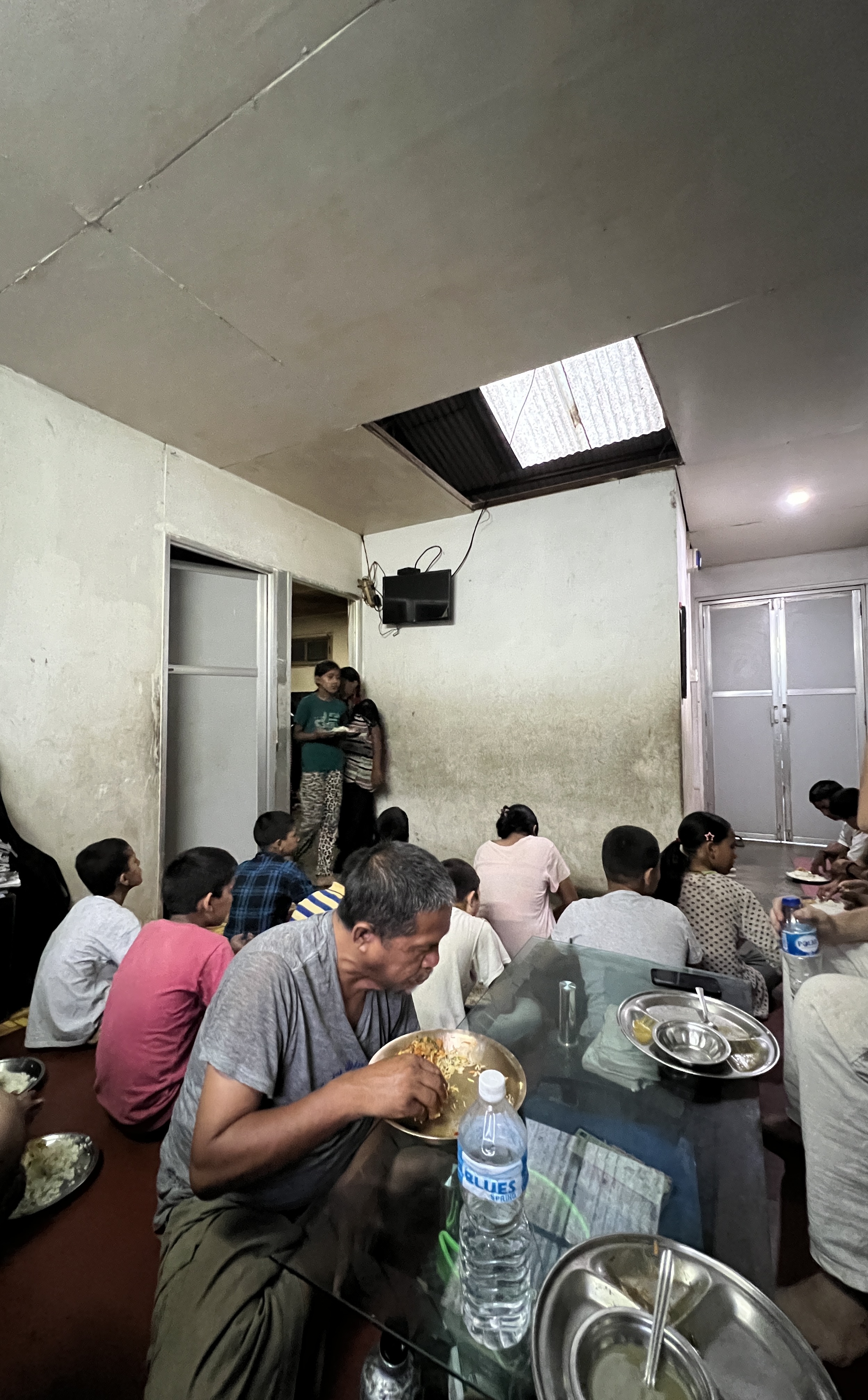 If we go over the target goal, I’d love to donate the money towards making the children’s lives more comfortable here. This is where they eat all their meals (on the floor) and their leisure time on Saturdays involve watching movies in the afternoon on this TV. 21 kids watching TV on this tiny screen.