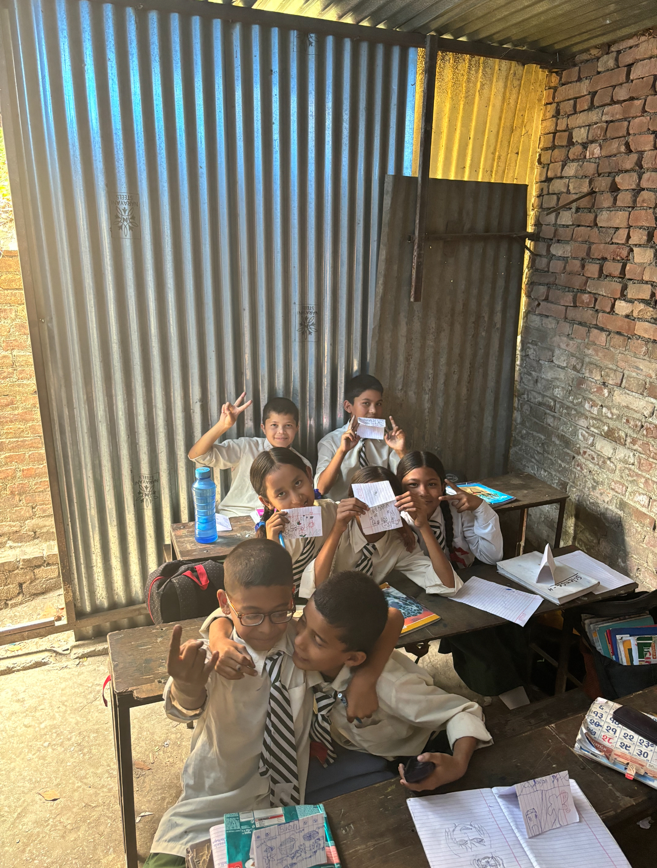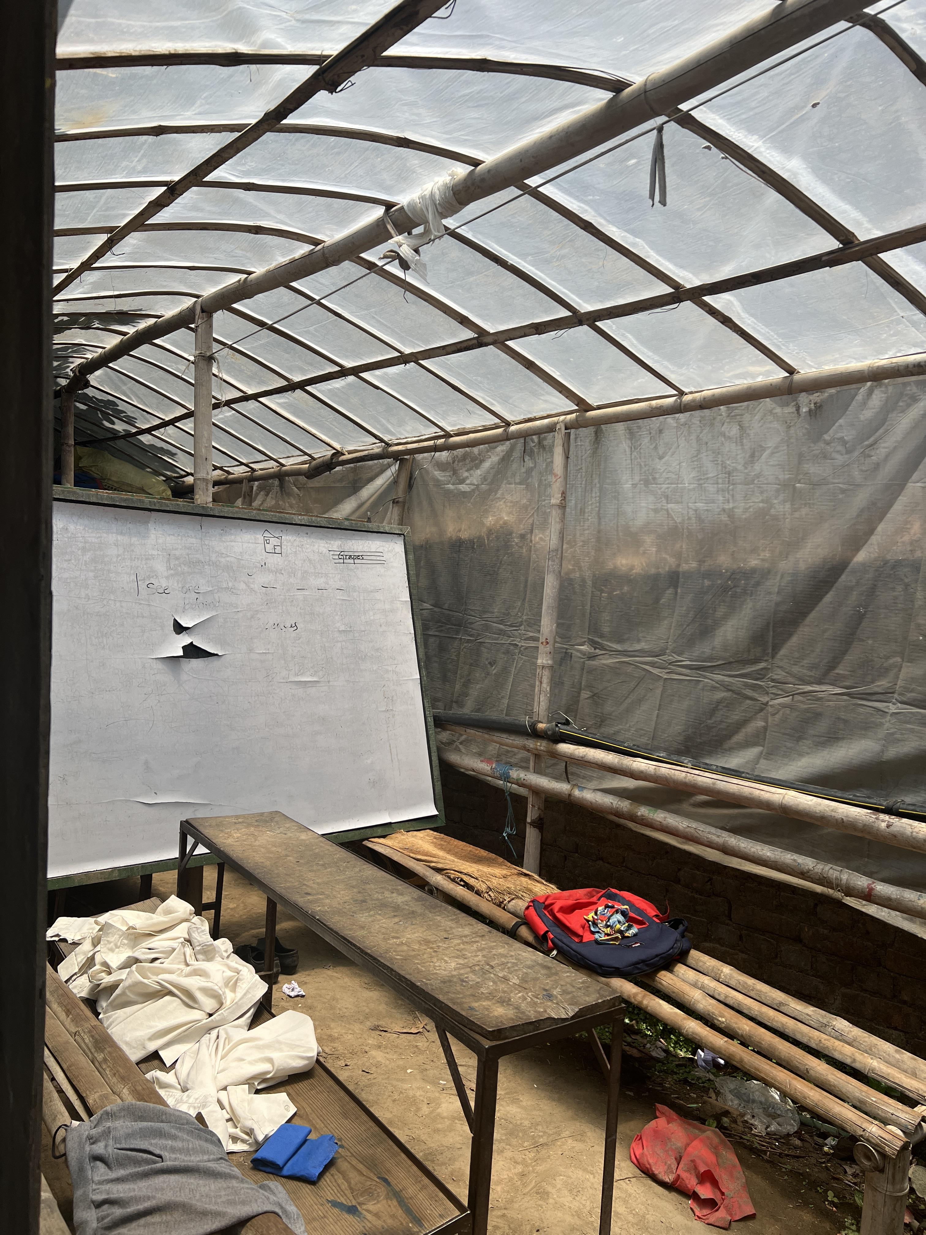 The school itself was almost completely destroyed in the earthquake.The classrooms now look like this and have looked like this for years. There is no adequate roof, so the children are forced to sweat in 30+ degrees in the summer during class.