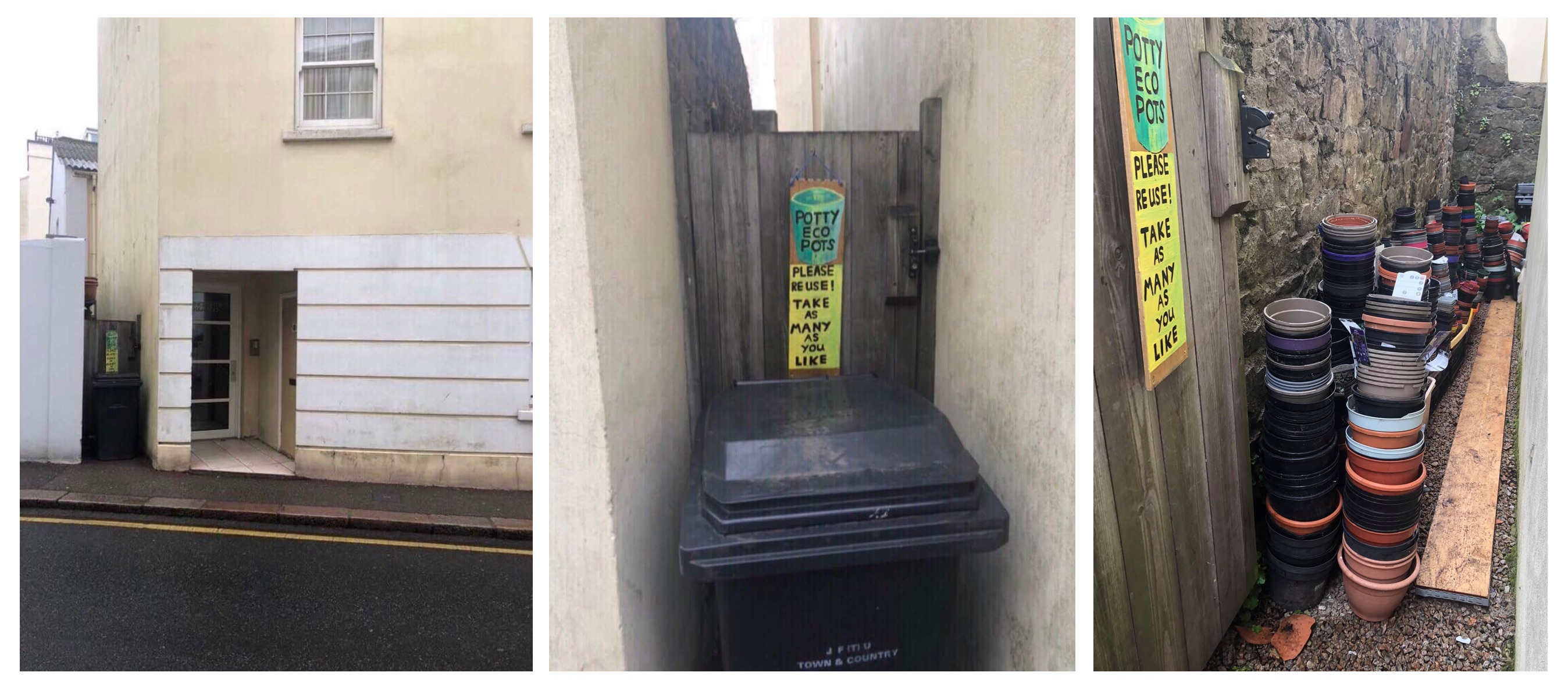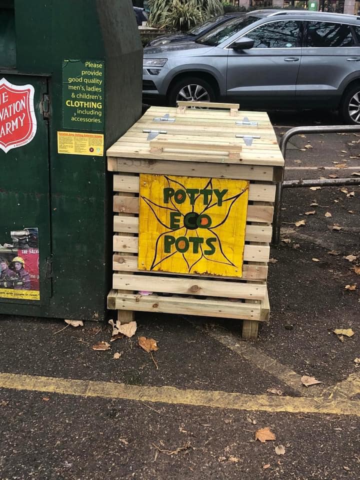 Potty Eco Pots helps people to reuse plant pots, saving them from waste. People leave pots they no longer need, for others to collect, free, when they need them.
