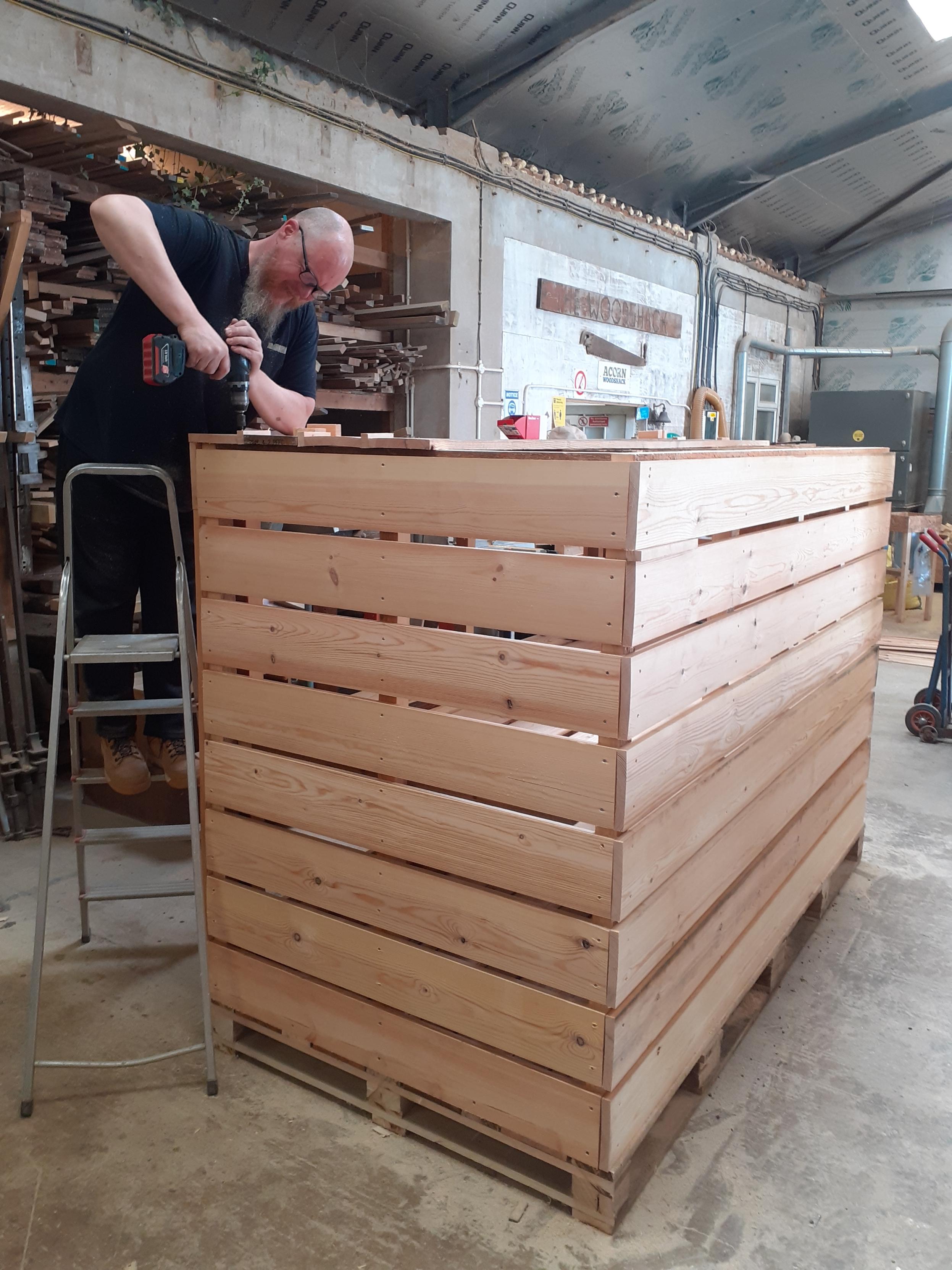 It cost over £350 ($430) to build and deliver, and was made by a local charitable organisation called Acorn. Builders merchant Normans Ltd. provided the timber at a greatly discounted price and the Parish and local government gave permission for it to be installed in the Recycling Centre.
