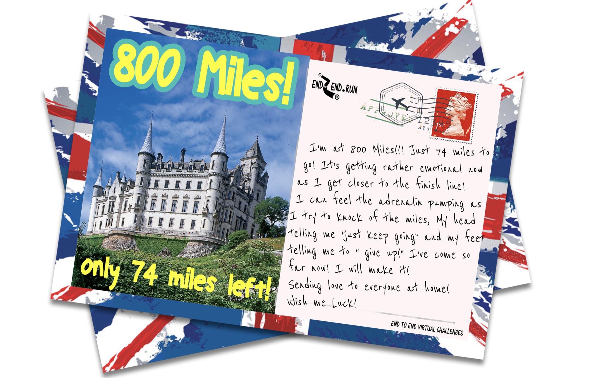 We are aiming to raise £1 for every mile we run ....so £874 would be FANTASTIC 🥳 Whoop!