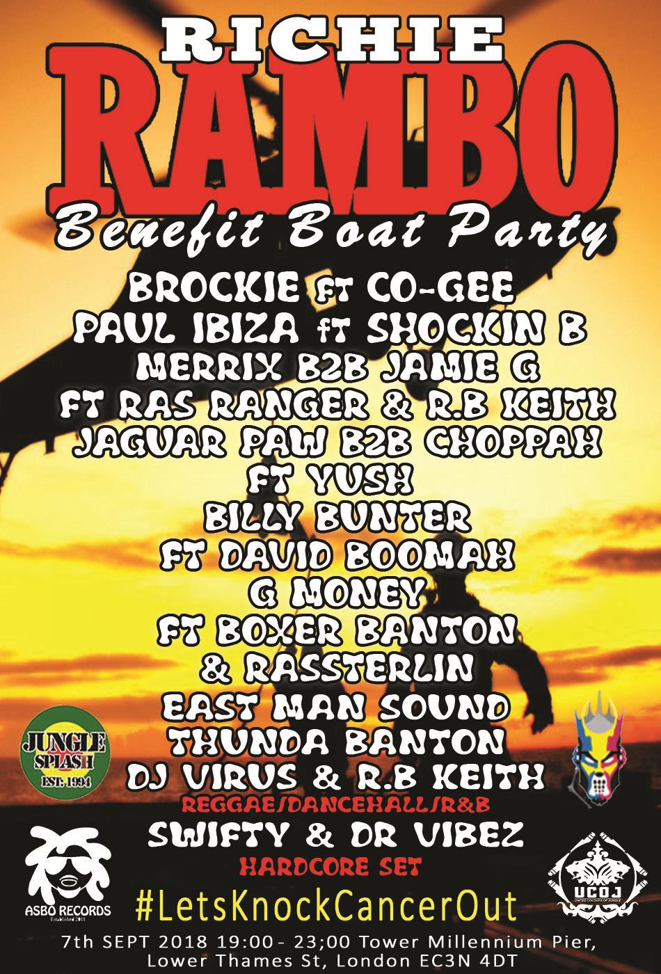 The Jungle Community Are Having A Party To Raise Funds For Fellow Junglist & Raver Richie Rambo Who Was Recently Diagnosed With Pancreatic Cancer , As One Of Our Own We Felt It Was Only Right To Reach Out & Help Out One Of Our Scenes Greatest Supporters & His Family Through This Tough Time Finacially & Emotionally As We Can. Many Of Us Know Richie & Chrissy & They Hold A Dear Place In Many Ravers ,Dj's ,Mc's & Even Promotors Hearts.