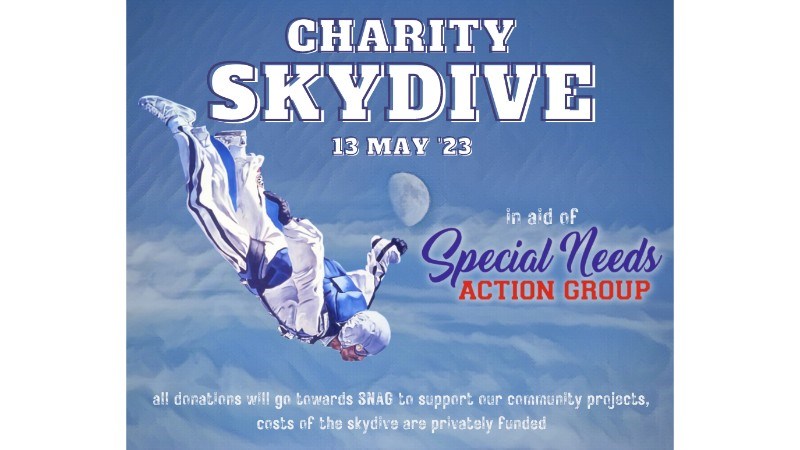 Sabrina and John Paul Cano will on the 13th May 2023 be taking part in a Charity sky dive to raise money for the Special Needs Action Group (SNAG). All the monies raised will be use by SNAG to support their community projects which support those with Special Needs/Disabilities and their families